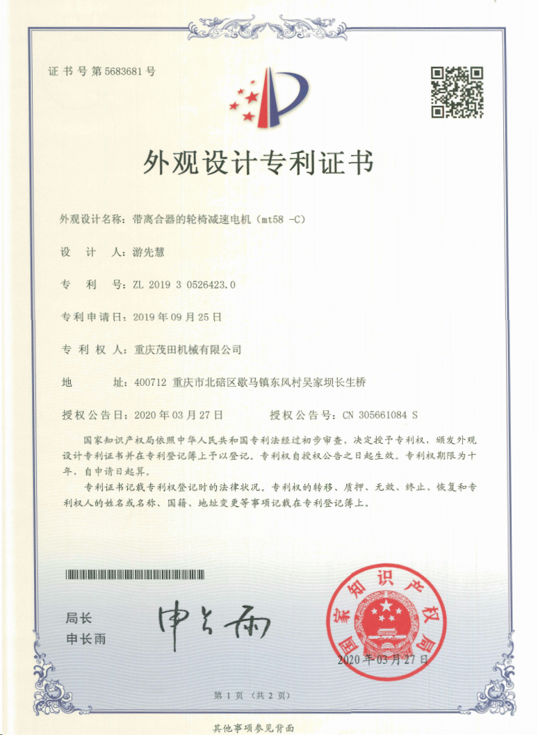 重慶茂田機械有限公司是國家級小巨人企業、國家高新技術企業、重慶市專精特新企業、重慶市知識產權優(yōu)勢企業,致力于現代化山地農業機械、各類非標減速電機及其控制系統的研發(fā)、生產、銷售。擁有重慶市市級研發(fā)平臺1個 目前研發(fā)、生產、銷售產品廣泛應用于農業機械、醫療康復設備、交通代步工具、智能搬運設備、以及機器人動力系統等領域。我們的產品具有完整的自主知識產權,擁有多項專利技術及“重慶